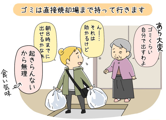 JUGEMテーマ:介護 午前中の母江さんは寝ぼけっぷりが凄まじいのです。 万が一、朝8時に起きることができてもゴミを出すという意志は一切ありませんw そしてゴミを出したとしても(たかだか数十メートルですが)自分の家が認識できていないので帰ってくることができません。 でも嬉しいんですよね。こんなふうに気遣ってれるのが。だから 「ムリだよ」とか「帰ってこれないじゃん」とか言わないようにしています。 とっさに上手い返事をするのは難しいですが、ゴミ出しのやりとりはもう一年間続い...