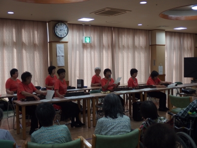 祝!敬老の日 という事で、オリーブで『敬老会』を開催させていただきました。 今回は『琴修会』の皆様が素敵な大正琴を演奏して下さいました。 13曲演奏して下さいました。 1.まつり 2.赤とんぼ 3.里の秋 4.せんせい 5.きよしのズンドコ節 6.知床旅情 7.好きになった人 8.野崎小唄 9.他人船 10.無錫旅情 11.私の城下町 12.いい湯だな 知っている曲が多く口ずさまれる方が多かったです。 総勢 約100名で聴かせていただきました。 複雑な指の動きにび...