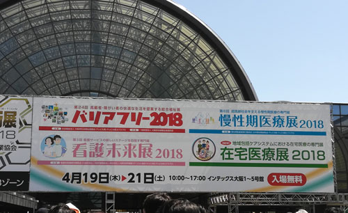 4月19日から3日間、インテックス大阪で開催された「バリアフリー展」。 インテックス大阪内には複数の建物があるのですが、そのほとんど全てが介護関連用品で埋め尽くされ、1日に約3万人が訪れる、西日本では最大級の介護フェアです。 約10年前から、毎年のように見学に行っていますが、今年も初日に突撃してきました。 ジャンルに少々片寄りはございますが、私の目に留まった物をご紹介します。