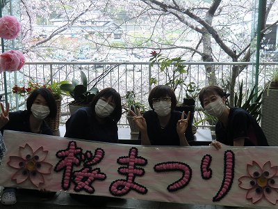 JUGEMテーマ:社会福祉 皆様、こんにちは! 肌寒かった毎日にようやく春の訪れがやってきました。 桜も咲き誇り、少し暑いと感じる日までありますね。さて今回はあっとほーむのお花見を紹介します。 まずはレクリエーションにて桜の壁面を作りました。 介護職員Uが案を出してくれました。桜の花びらをピンク色で用意し利用者様には桜をイメージし重ねて貼ったり並べたり綺麗な花が出来、あっとほーむ内でも桜一色です。 特別養護老人ホーム六尾の郷ロビーの桜の花が満...