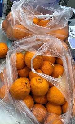 JUGEMテーマ:社会福祉 2月中旬、朝から特別養護老人ホーム六尾の郷利用者I様の家族様が、「うちのんやから酸っぱいやろうけど。」と、もぎたてのポンカンを一輪車いっぱいに乗せて持ってきて下さいました。 早速頂いたポンカンを施設長と一緒に試食。 「ん!お店で売っている物よりもジューシーで甘い!!」 とても美味しかったので、ぜひ新鮮なうちに利用者様に食べて頂きたいと急遽、昼食のデザートで提供することにしました。 「皮を剥く...