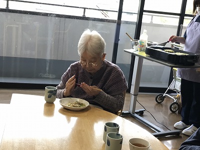 JUGEMテーマ:社会福祉 1月のおやつクラブは「白玉ぜんざい」を作りました。 デイサービス全体が甘い匂いに包まれて利用者様もワクワク♡ 豆腐と白玉粉を混ぜ合わせて、白玉を作ったので利用者様も食べやすい 様子(*^^*) 皆さん美味しく綺麗に召し上がって下さり「お腹いっぱい」と喜んで 頂きました♪ 感染予防に取り組み今月もおやつクラブを実施出来て、利用者様の笑顔が 見れて良かったです、次回のおやつクラブもお楽しみに(@^^)/~~~
