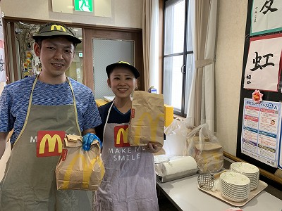 JUGEMテーマ:社会福祉 こんにちは。 今回、デイサービスでは、昼食にハンバーガーを皆様に食べて頂きました。 いつもおいしい食事を作って頂いている六尾の郷 厨房の皆様には、ほんとに申し訳なかったのですが、この日の昼食メニューを止め、マクドナルドのハンバーガーを注文しました! その上、チキンナゲットとフライドポテトを揚げて頂きました。 おかげさまでアツアツのフライドポテト、チキンナゲットを提供できました。 「ありがとうございますっ!」 &...
