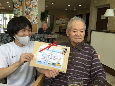 JUGEMテーマ:社会福祉 今年はコロナ感染症対策の影響から面会自粛に伴い、職員だけでの『父の日』となりました。 毎年、家族様に参加の声掛けを行い、職員と一緒に「感謝」を伝えるのですが、私たち職員だけで盛り上がるのかが不安な中、当日を迎えます。 今年は事前に家族様よりメッセージを頂き、それを家族様に代わって読み上げます。 息子様、娘様、奥様、孫様、それぞれの想いを届けようと心を込めて読み上げます。 中には笑えるエピソードやもらい泣きしそうなエピ...