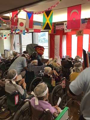 JUGEMテーマ:社会福祉 去年は、白組が優勝でしたが・・・今年はどうでしょうか? 今年は、利用者様による競技を『玉入れ』『ボール運び』の二種目行いました。 さぁ、皆さん頑張って下さいね♪ 副主任の挨拶時、『獅子舞』が登場し利用者様は大変大喜びされ、両手で旗を振ったり凄く盛り上がった雰囲気の中運動会が始まりました。 玉入れでは、皆様ボールを職員が背負っているカゴめがけて楽しそうに投げら...