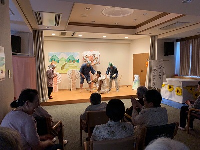 JUGEMテーマ:社会福祉 日頃の皆様への感謝の思いを込めて、今年も職員一致団結し、全力で敬老会を行ないました。 六尾劇団 『はなさか爺さん』 昨年に引き続き、演劇で皆様に笑って頂きました。緊張で台詞が棒読みになったり、練習と全く違う事をする役者がいましたが、最後のオチまでなんとか辿り着くことができました。 歌謡ショーでは、今年初参加のKケアワーカーの「狙い撃ち」で歌って踊って、激しい動きで大盛り上がり! 実は、敬老会の企画...