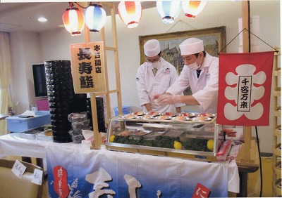JUGEMテーマ:社会福祉 9月10日(火)朝9時頃、日本橋で古くからお寿司屋を経営している『はりそう』さんが出張・来苑下さいました。 テーブルの上にみるみるうちに回転寿司のレーンが設置され、試運転でお皿がクルクル♪早速、職人さんがお寿司を握り始めました。 座席・人数の加減で第一部と第二部に分けての開催。開店前、食堂の前のサロンでお待ちいただいたのですが待ちきれず、ドアの小さな小窓から中の様子を覗いてみたり・・・ソワソワ♪ワクワク♪♪開...