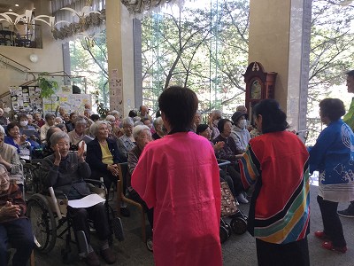 JUGEMテーマ:社会福祉 〜平成最後の歌声高らかに!!〜 見事なまでの桜が終わり、若い緑が眩しい頃に「ボランティア みずき会」様による恒例!の大正琴の演奏会が、平成最後に「第34回」を迎えました。10年以上も利用者様へ美しい音色を届けて下さっています。 特別養護老人ホーム六尾の郷・グループホーム六尾の郷・あっとほーむ六尾の郷・デイサービスセンター六尾の郷・ケアハウス長寿苑の利用者様、総勢80名に参加頂き、大正琴の音色に合わせ、楽しく元気に大合唱! 今回は、...