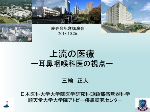 先月都内の研究会で「病気の上流としてのバリア機能障害」と題して講演させていただきました(図1)。その後、順天堂大学耳鼻咽喉科同門会誌に寄稿した文章を紹介させていただきます。耳鼻咽喉科医も「上流の医療」に寄与できると思っています。 「上流のビジネス」という言葉が少し前に流行ったのをご存じの方もおられると思います。この夏、ネットでTED Conferenceの「病気の上流を診る医療」というプレゼンを拝聴しました(図2)。演者のDr. Risi Manchandaは、ロサンゼルス中南部で医師として働いた経験から、難民...