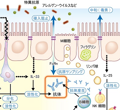 生体の最前線である上皮は常に様々なストレスを受けているがそれに対する防御機構としてバリア機能が備わっている。 これは、輸送機能あるいは透過性の裏返しの現象であると考えられる。すなわち、イオンチャネルはイオン透過性を担っているが、電気的バリア機能としても機能していると考えられる。 最近のアレルギー研究の進展から、このバリア機能の破綻が、アレルギーを引き起こす始まりであると考えられている。 【出典】三輪 正人, 三輪 真由美著: 「図でみる免疫学のABC」 免疫系の仕組みと基礎 獲得免疫. JOHNS 20...