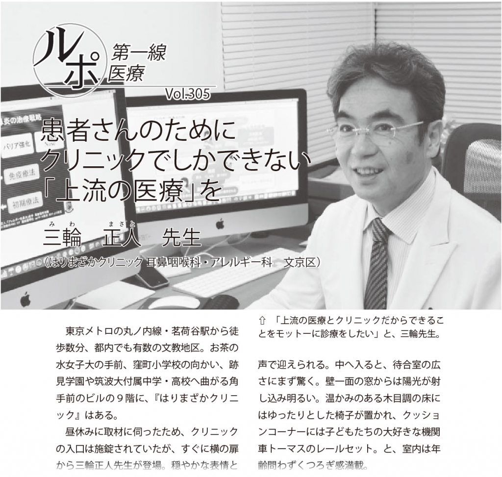 東京保険医協会の月刊誌『診療研究10月号』に、インタビュー記事『患者さんのためにクリニックでしかできない「上流の医療」を』が載りました。『ルポ 第一線医療』のコーナーです。 ◎「上流の医療」とは何か 川の流れの上流である、症状が出始めの初期のこと。そこで治療すれば治るのに受診しない(あるいはできない)・・・ ◎「クリニックだからこそ」できること 開業してこそできること、大学ではできないこと、クリニックでできることは・・・ ◎学びに真っ直ぐ、しなやかに生きる 大学の男性医師で初めての育児休暇...