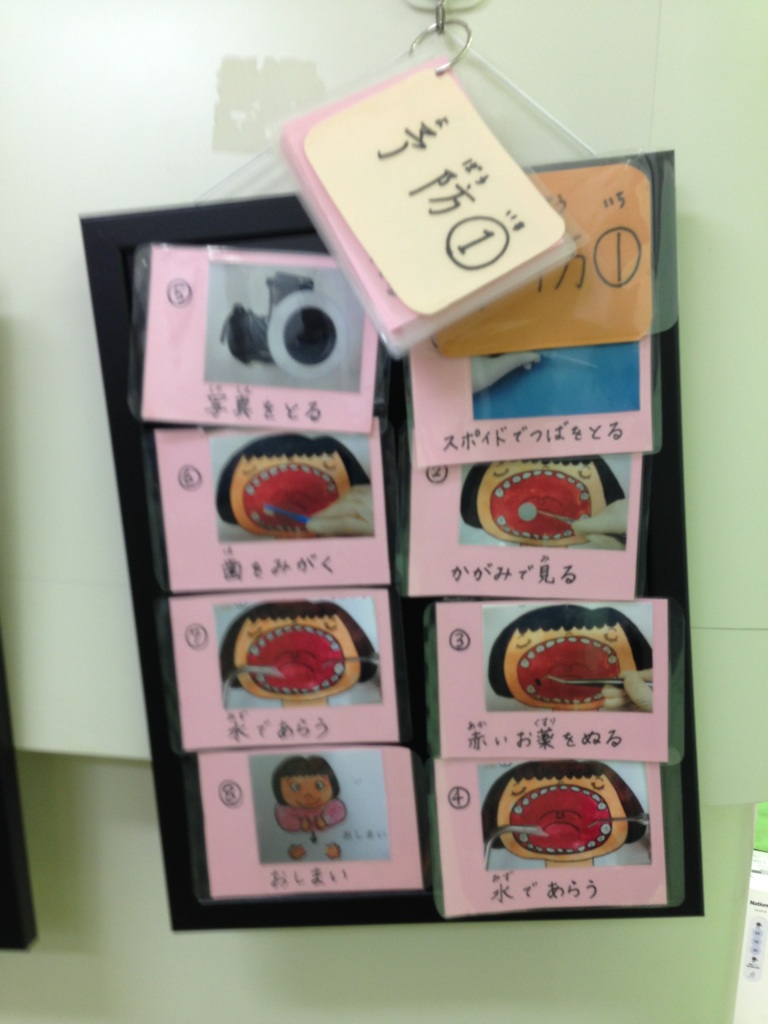 JUGEMテーマ:自閉症スペクトラム、発達障碍 予防歯科にて。 先輩ママさんからの要望で 作られたといわれる絵カード。 昔からとっても助かっています。 他に 担当の先生、そして器具の名称が書かれた写真カードもあります。なんとなく物事が進められるのが苦手な(不安な)りゅう君には本当にありがたいグッズです。 何かする時は いつ、誰と、どれだけの時間、どんなことをするか。 わかるように明確に提示してからりゅうと交渉します。 遊びや勉強、行事と違って 『歯科』 には 行かない(しない)という選...