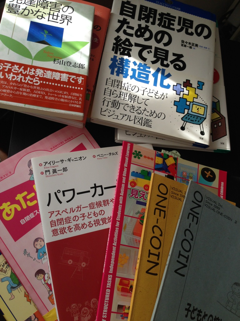 JUGEMテーマ:自閉症スペクトラム、発達障碍 最近読んだものを並べてみました。 何回も読み直しているものも並んでいます。 『絵で見る構造化』などは、今、中学で先生方が支援のお部屋を構造化されているので、 なにかアドバイスできないかしら、と最近また。 なかなか、家事、育児、仕事となると読む時間がとれないので、とりあえず鞄には一冊は入れておくことを習慣にしています。 すると、銀行の待ち時間、子どもの習い事の待ち時間、会社でのランチタイム後の五分、と、細切れではありますが時間があ...