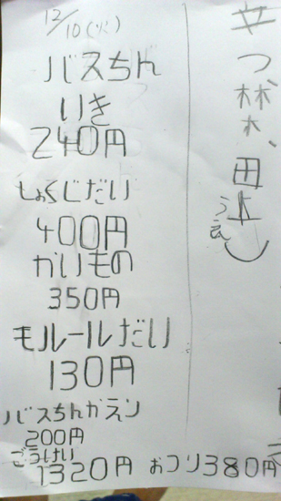 JUGEMテーマ:自閉症スペクトラム、発達障碍 今日はカイの学校で、街への遠足があった。 おこづかい1700円持たせて、 バスとモノレールをのりつぎ、市場でランチをし、 おみやげを買って、帰ってくるコース。 おみやげは親が事前にリクエストするとのことなので、 揚げドーナツ(サーターアンダギー)をリクエスト。 カイはちゃんと覚えてて、おつりも渡してくれた。 成長するものだなぁ〜〜。 以下、カイの今日のおこづかい記録簿。 カイは文字のデザインが得意。 カイフォントと名付けたい!←親バカ(...