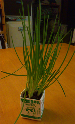 JUGEMテーマ:自閉症スペクトラム、発達障碍 学校から、牛乳パックを植木鉢にして育てたネギを持って帰ってきました。 「カイ、これどうしたの?」 「ネギ!」 「カイが育てたの?」 「うん!」 と、(ゲームをしながらだけど)元気に答えてくれました。 帰るなりゲーム機に手を伸ばすので、 「こらこら、宿題が先!」としかる毎日。