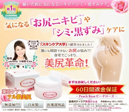 エアコンで乾燥したお尻は黒ずみガサガサに! エアコンがないと汗で蒸れて、 おしりニキビの原因になるし、 エアコンをつければ、 乾燥でお尻黒ずみガサガサに! どっちにしても 現代人のお尻は苛酷な環境で、 かなりのストレスを受けているようです。 そんなあなたのかわいそうなお尻に、 専用のジェルでケアしてあげるのはいかがですか? エアコンの季節は、 何かと脱ぐ機会も多いですから、 お尻の黒ずみガサガサは気になりますよね? そんなお尻に早めのピーチローズケア! ツルツル美尻を目指しましょう! ⇒ピー...