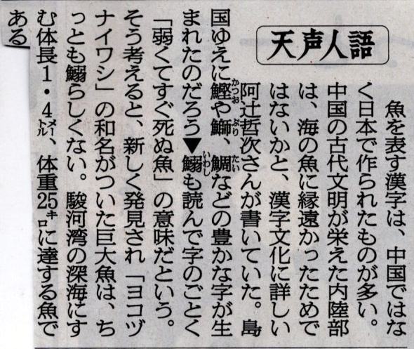 JUGEMテーマ:日本文学 いきなりpdffromスキャナで、昔々スキャナで取り入れ保存して置いた文書を一括pdfに変換していたら、すっかり忘れていた文書が出てきてうれしくなった。今日(1・28)の朝日新聞「天声人語」は「魚を表す漢字は、中国ではなく日本で作られたものが多い……」と書き出されている。それに因んだ奇書?を新刊紹介で取り上げたことがあった。1980年代、小学館発行の『高校教育展望』に新刊紹介を連載していた。これは1989年5月号掲載のもの。 &...