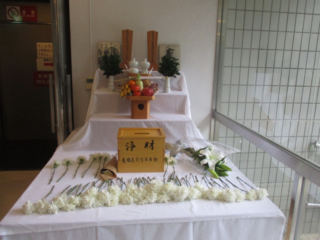 JUGEMテーマ:日本文学 11月25日は、作家三島由紀夫の命日で、「没後50年 三島由紀夫氏追悼の集い 憂国忌」があった。会場の星稜会館(千代田区永田町)に着いた時は、開会の2時少し前、大変な混雑の受付を済まして2階の大ホールに上がったが、もう満員で、立ち見の一人となった。幸い第一部の「鎮魂式」の済んだ後は座れたが、疲れた。 第一部の神事「鎮魂式」の始まる前の会場 ▼ 「招魂」などの神事が全員起立や...