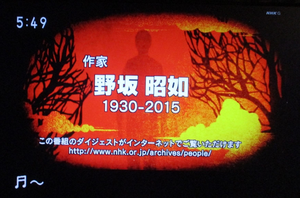 JUGEMテーマ:日本文学 NHKの「あの人に会いたい―野坂昭如」(12/12)はいい番組だったが、実は事実でないこと(嘘)を、番組は流した。それは何か。問題提起をする。 番組の中で「野坂さんの人生が一変したのは、終戦の直前 突如神戸の街を襲った大空襲でした。家を焼かれ養父母を亡くした野坂さんは……」とナレーションが流れる。この「養父母を亡くし」は事実と違う。養父の戦災死は本当だが、養母は死んでいない。空襲で大やけどはした...
