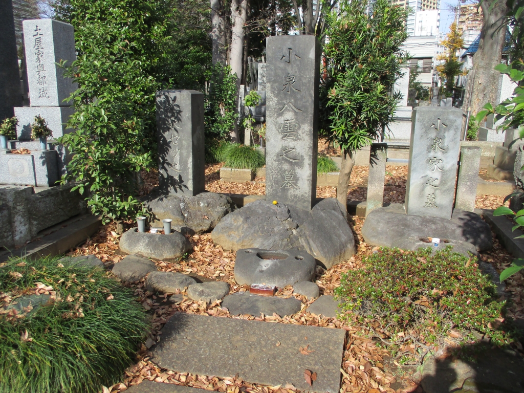 JUGEMテーマ:日本文学 今日9月26日は小泉八雲の命日。今年はコロナ禍でイベントはなし。雑司ヶ谷霊園の墓参りをしてきた。小雨のの降るあいにくの天気だったが、彼岸過ぎの土曜日、霊園に墓参りの人影があちこちに見られた。正午少し前だったが、命日とあって、小泉家の墓所にはたくさんの花が供えられ、お線香にはまだ煙が立っていた。 三つ並んだ墓の真ん中が「小泉八雲之墓」、その左が「小泉セツ之墓」、右に「小泉家之墓」。八雲の墓碑の側面に「正覚印殿浄華八雲居士」と戒名が刻まれ、もう...