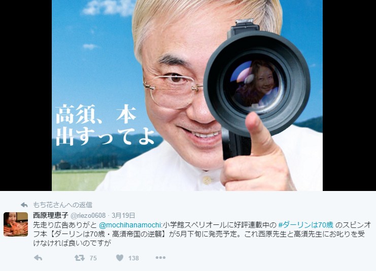 なんか素敵なツイートを発見しましたww ダーリンは70歳、またまたアマゾンで在庫切れ、、だってこんなサービス精神満載で 恋愛の楽しさや人生哲学まで伝えてくれるマンガなら、みんな読みたいと思う! 4/14修正Amazon在庫ありです ↓↓ ダーリンは70歳 (コミックス単行本) そんな中・・なんとスピンオフ本が出版されるらしいです。 西原先生担当の八巻氏のツイート↓ 5月末発売、アマゾンで予約も開始してます ↓↓ ...