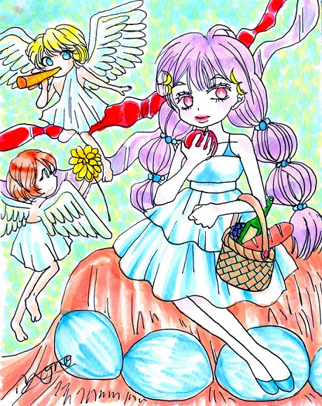 「アラクネ。今日はどこへ行くの?」 「今日は森へ行くわ」 そう言って森へ出かけたアラクネでしたが、 すぐに疲れてしまいました。 小道をそれて 丁度腰を下ろせそうなところを見つけ ゆっくりすることにします。 「アラクネ。お花をあげるよ」 「アラクネ。疲れただろ?音楽を聞かせてあげるよ」 「ありがとう」 森へ行くのは今度にしたようです。 持っ...