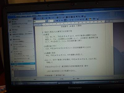 JUGEMテーマ:ミステリ 今日は早目に起きた。追加書式の作成と前回の加筆に訂正分を作成する という事で…ちょこちょこ書いてたが、義姉から遺贈の処理を頼まれて 「いいよ」と軽く返事した僕。アポ取って30分間だけの面談のしょっ ぱな、開口一番「…遺贈が一番難しいんですよね〜」げげっ!ほんまか いな。俺、何も知らないし〜じきに難しい意味が解って来た・・・ 一番の原因…法務局と地方自治体のデータがめちゃくちゃなんだ!それ で、余計な書式が増えて行く。ぼちぼちシリーズ化していくが、地方自 治体〜田舎...