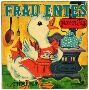 JUGEMテーマ:かわいい絵本が好きなのだ またまた、めずらしいピクシー絵本が再入荷しています。 「あひるさんのすてきな1日(Frau Entes Grosser Tag)」。 1959年発行のピクシー絵本創刊当時の古い絵本です。 この当時のピクシー絵本はあひるとにわとり(それもめんどりとひよこ)のお話が多いです。童話ではおなじみの動物ですものね。 この絵本、一部のページが2色刷りです。 レトロでとってもおしゃれなんです。 良いお天気が続いて動物たちはみんな楽しそう。 でも、あひるさ...