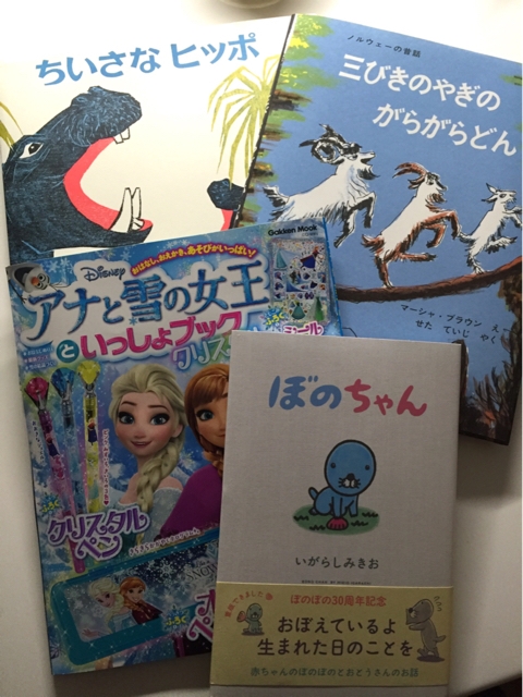 育児ブログぷっぷくほっぺにようこそ! ぷっぷくの母、きょうこです。 昨日の本はこちら! ・ちいさなヒッポ ・三びきのやぎのがらがらどん ・アナと雪の女王といっしょブック ・ぼのちゃん お馴染みの本と新しい本♪ ちいさなヒッポもがらがらどんも ヒヤヒヤする場面がある本で そういうのって子ども好きですよねー! でも、がらがらどん を すっごく怖い声で読もうとすると嫌がるw そういう純粋なところがかわいい。 いつまで恐がってくれるのかなぁ… アナと雪の女王といっしょブッ...