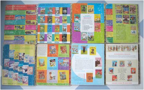 JUGEMテーマ:絵本のたからばこ 5月26日の続きです。 リトルゴールデンブックの裏表紙4回目です。 この画像、いずれも1960年から63年までのものですが、1960年代初頭はすごくデザインのバリエーションが多く、アメリカのコレクターさんによると20〜30種類あるそうです(1〜2ヶ月に1回デザインが変わっていたことになります)。 60年代後半からはあまり変わらないんですけどね。 今回、当店の在庫から探し出せたのはこの8種類。 当時 全盛だったポップアートを思わせるレイア...