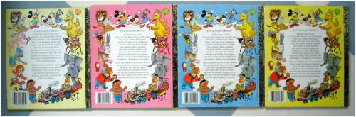 JUGEMテーマ:絵本のたからばこ 6月17日の続きです。 リトルゴールデンブックの裏表紙7回目です。1980年代まで来ました! 左から1983年〜90年代半ば、 真ん中2冊(ピンクと水色)が1990年初頭、 90年代初頭から96年ごろ。 1980年から90年代後半にかけてもマイナーチェンジがありますが、何年かごとに切り替わったというより、ちょっぴり違うデザインのものが平行して流通していたようです。 地色の違いはすぐにわかりますが、ちょっとした違いは描かれているキャラ...