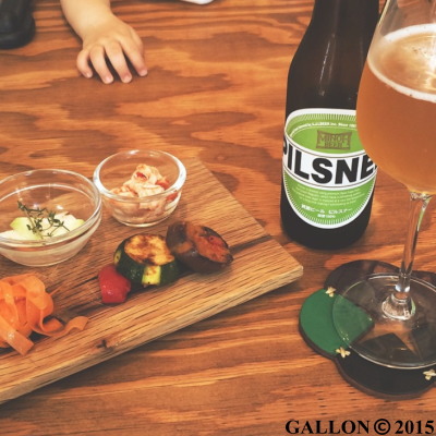 西区のBAL GLAMSで箕面ビールとランチ。 幼児用の椅子もあるので、子連れでも行きやすいお店です。ガロンのコースターもちらり。