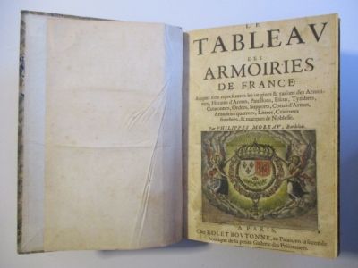 JUGEMテーマ:古書・絶版本 フランスの紋章の本入荷しました〜 1609年-1630年 フランス パリ刊行 1冊 全3巻本を1冊に収めています 3巻分のタイトルページには、手彩色の木版画図譜付き 18世紀のひじょうに珍しいフランスの紋章の本で、約600図の...