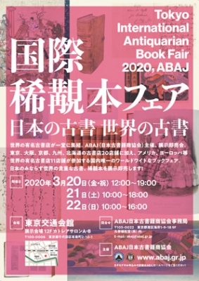 JUGEMテーマ:古書・絶版本 3月20日(金)祝日より22日(日)の3日間、有楽町の東京交通会館に於て国際稀覯本フェアーが開催されるそうです〜 東京を始め、大阪、京都、札幌、熊本から有力古書店20軒が参加し、又ヨーロッパ、アメリカからも著名な11店舗が出店する国内唯一の国際色豊かなブックフェアー ...