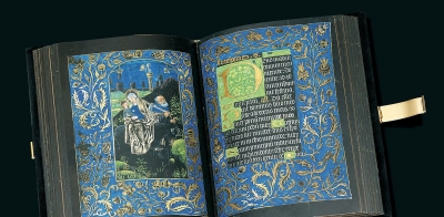 JUGEMテーマ:古書・絶版本 ♠1460年〜1475年に作成されたイルミネーション本(手写本)です 『The Black Hours 黒い祈りの本』です。 すべて手で書かれた聖書です。 ヴェラム(子羊革)を黒色に染めた後に金箔、銀箔で文字や装飾されています