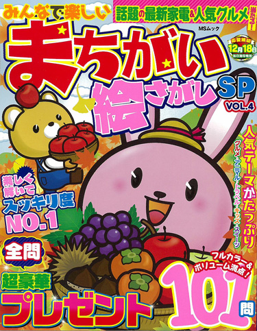 JUGEMテーマ:本 メディアソフト 「みんなで楽しいまちがい絵さがしSP VOL.4」 の表紙イラスト担当しました。 今回も表紙のみですが。 「みんなで楽しいまちがい絵さがしSP VOL.4」 http://www.media-soft.biz/book/b281259.html 2017年8月19日発売 AB判 160ページ 定価:本体657円+税