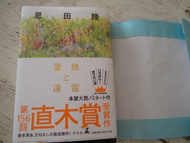 やっと読み終えた 恩田陸「蜜蜂と遠雷」 文字数、多い。横書きははじめだけ。 本編は縦書き、2段。 ギフトをどう評価するか、 評価する人自身が問われる。どんな結果がでるんだろう、 この本を、映像にするなら、 誰がどんなふうに演じてどんなふうに弾くんだろう。 借りた本を返すにあたって、しおりを作った。 ちょっと可愛らしすぎだな...