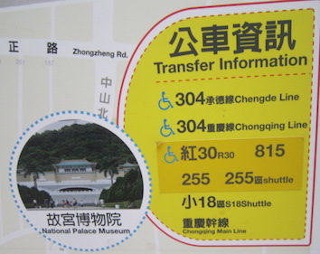 JUGEMテーマ:エッセー・紀行文 風はさほどでもありませんが、かなりの雨です。私達が行きたいのはここ、故宮博物院です。駅を出て、バス通りまで出ますと、幸運にもすぐに故宮院行きのバスが来ました。雨に追われるように飛び乗ります。ええっと均一料金のようです。確か15元(60円 二人で120円)、安いものです。しかし、両替機なし。二人合わせて小銭が揃うかな?さて、ここからがすごかった。バスの運転が荒い。車もバイクもお互いにすごく幅寄せしてきます。あとわずか10-20cmという所までは平気で近づきますね。しかもアク...