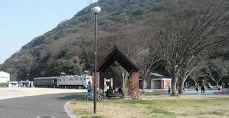 JUGEMテーマ:エッセー・紀行文 あー、少し疲れました。足が棒になっています。とぼとぼと坂を下り、帰りはレトロラインを使いましょう。広場では古い車両をレストランに使っています。しばらく待ちますと、青い電気機関車が来ました。多くの客と共に乗車します。往路は徒歩、復路は電車です。さて、また門司港駅から戻ります。皆様方には、本州の最端・下関市と九州の最北端の北九州市門司区とがどの様な位置関係にあるかがお分かり頂いたと思います。さてさて、次はどこへ行きましょうか。乞うご期待です。