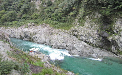 JUGEMテーマ:エッセー・紀行文 断続的に小雨がぱらついていますが、殆ど気になりません。さて、しばらく待っていると、船が戻ってきました。「川下り」ではなく「川巡り」ですね。お客が二人でも運行しています。係の人の弁では「悪天候で無ければ、お客さんが来る度に船は出る」そうで結構なことです。さて、乗り込みましょう。お客は10人ほどです。川下へ向けて出発進行!。さすがに水の流れは速く、岩に当たる水はしぶきを上げることもあります。これは「ライオンの顔」の岩だそうです。周囲はほぼ岸壁で、大雨が降ると年に幾...