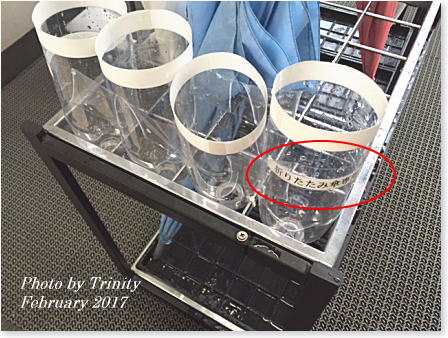 ◆ 今日の東京、午前中は雨・・・。午後から晴れるという予報だったので、折り畳み傘にした。歩きながらふと先日銀行に行った時の傘立てに面白い工夫をしてあったので、思わず写真をパチリ(下)。 お客様が多い銀行は、いろいな傘を持ったお客様が来店されるので、きっとロビー案内の方の工夫なのかもね〜、と思いました。 ◆ ペットボトルを活用した折りたたみ傘用の傘立て。これはいいアイデア!! 暇な時に教室の傘立てにも取り付けてみようかなぁ。 ソフトファニシングとタッセル教室のトリニティ ...