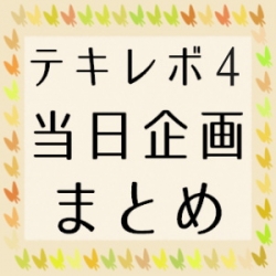 JUGEMテーマ:同人活動 さて、かねてより進めておりました「テキレボ4の当日企画を一覧に分類してまとめる企画」(テキレボ運営側による略称:テキレボ企画紹介) とりあえずできましたので、下記からダウンロードしてご利用いただけます。 【テキレボ4の当日企画を一覧に分類してまとめる企画】(PDF版) ↑推奨。スマートフォン・タブレット・PC・印刷利用いずれにも最適な仕様となっています。 当日企画への公式サイトへはハイパーリンクを埋めてあ...