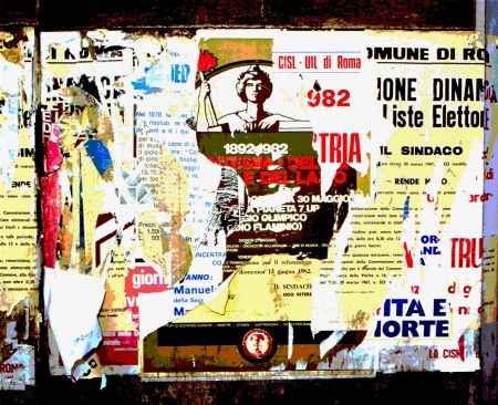 JUGEMテーマ:デザイン 日本では、こう云う風景は見掛けることが無くなったような気がするのでありますけれども。 外国では、街のアチラコチラにベタベタと。 おモチも付いたお汁粉が。 いえ、ポスターが重ねて貼り付けられているのでございます。 そのポスターが。 風雨に曝され、オシッコを掛けられ、爪で磨がれたりいたしまして。 実に美味しそうな風味の。 いえ。 実に素晴らしい、アンバランスの風合を醸し出しているのでございます。 もしも、持って帰ることができますな...