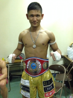 JUGEMテーマ:格闘技全般 トランクスの、右足の裾に「スポーツ整体WALKIN」のロゴが 昨日、ディファ有明にて行われた、WPMF日本スーパーライト級タイトルマッチに挑戦者として出場した 野呂瀬博之選手(ストラッグルジム)見事、判定勝利!ベルト獲得です そして、ストラッグルジムの鈴木秀明会長にアップ前のお時間をいただき、整体ケアを行ってきました。 試合では、普段の練習の成果を存分に発揮してくれました。 野呂瀬選手、おめでとうございます。 入場時に使う、のぼり旗