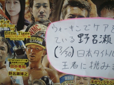 JUGEMテーマ:格闘技全般 本日は、練習前のケアにお越しいただきました。 ポスターを持参してくれたので、院内に貼らせていただきました。 野呂瀬選手 ガンバレ!