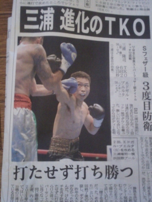 JUGEMテーマ:ボクシング WBCスーパーフェザー級タイトルマッチが22日、 横浜国際プールで行われ、王者の三浦隆司(30) =帝拳ジム、金足農高出、三種町出身=が、 挑戦者で同級1位のエドガル・プエルタ(32)=メキシコ=を 回TKOで下し、3度目の防衛に成功した。 (秋田魁新報 ホームページより) とりあえず防衛できてよかったです。 それにしてもこのクラス 挑戦者は強敵ばかりで厳しいです。 映像は見逃したのですが、ユーチューブにアップされてました。 同クラスのWBAチャンピオン内山選手...