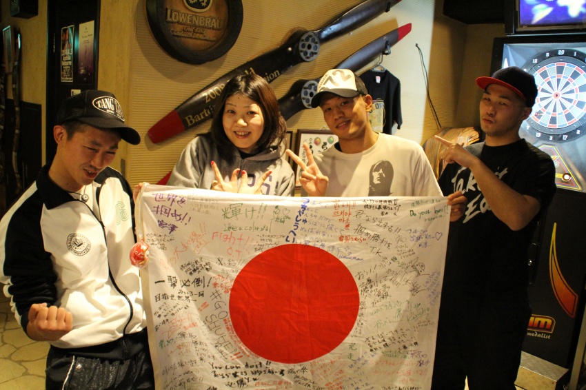 4/3(木)にオーストラリアのメルボルンで試合をする 土屋修平選手への応援寄せ書き大会に行ってきました。 左は2012年新人王の長嶺くん、右はマナベジムの宮崎くん。 同じ角海老の小國くん、元角海老で今本望ジムでトレーナーされてる中野さんも いらしてました。 他にもお友達、お知り合いが続々と。 仲良し〜 これまで見たことないぐらいガッツリきれいなブロンドに髪を染め上げた修平くん。 オーストラリアの人が見たら 「ヤバい奴が来たっ」 って思いそうなほど、何かいい意味でヤバい雰囲気があり...