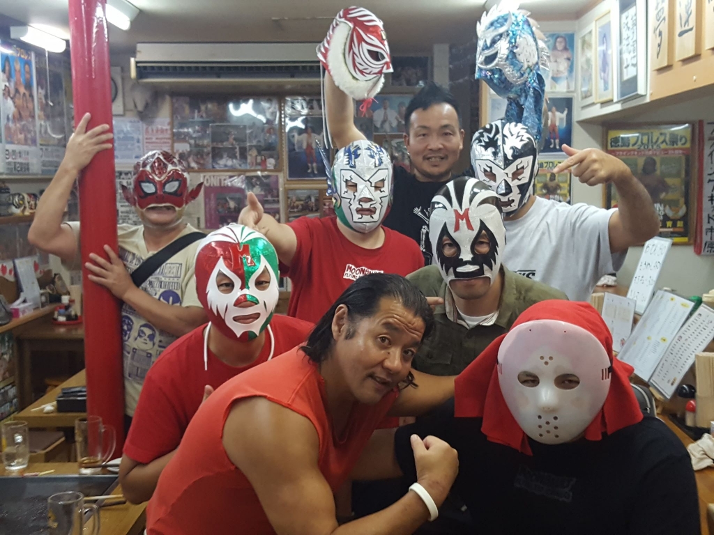 先日、プロレス仲間が誕生日だったのと 別の知人が柔術の大会で 優勝したので その祝勝会&誕生日会を開催しました。 で、徳島で プロレスと言えば 【お好み焼き】ムーンサルト 今回も ムーンサルトさんで開催させて頂きました。 最後は みんな揃って記念撮影 普段は 私1人が マスク姿ですが 皆さんプロレスファンなので 各自マスクを持参w 私は 【悪魔仮面】ミル・マスカラスのプライベートバージョンを装着 ...