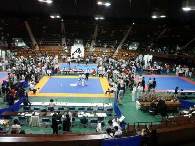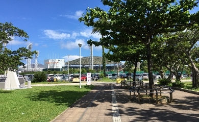 JUGEMテーマ:空手道 駐車場は混むので歩いた。道場からおよそ20分程か。モノレール駅前からセルラースタジアムと大会会場の武道館を臨む。 汗をたらたら流しながら武道館前に着く。今まで余り気にもとめなかったが、「富山県の国指定記念物と同質の珍石」と案内板に書かれている。「ふ〜ん、珍石ねぇ〜」 少し遅れたが何とか開会式に間に合った。...