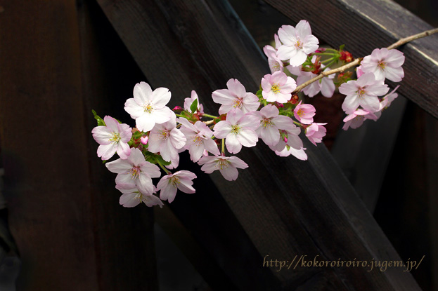 JUGEMテーマ:短歌最初のひと枝 闇の中太陽頼り咲いた花 うつむきながら闇を切り裂く (ここいろココロの短歌) この枝はほかの枝がまだ堅い蕾の時に一斉に咲きました後ろが焦げ茶の木製階段であったかかったのでしょう光が一方向からしか来ないので裏側にほとんど花がなくてただそのせいなのですが「このさくら、二心ないわー!」と思いました